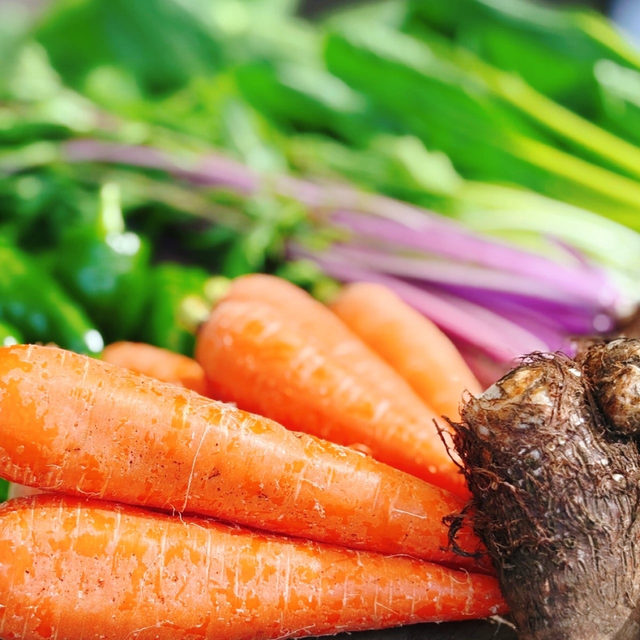人参/里芋/小松菜/水菜/青梗菜/ルッコラ/ケール/新生姜/ピーマン など。
